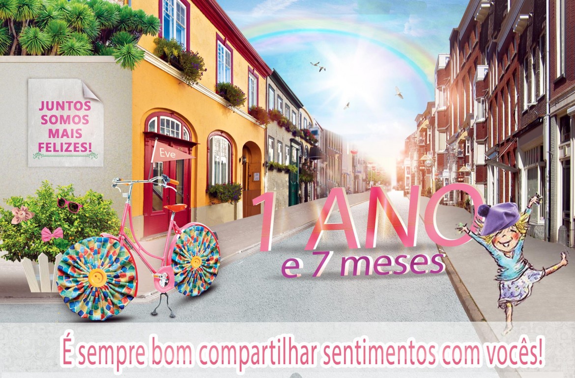 Um ano e sete meses 1 Outubro, 2015 by Eveline Hoje é mais um dia feliz! Comemoramos mais um mês do blog! Com muita satisfação e alegria agradeço a todos pelas visitas, curtidas e compartilhadas! Deus abençoe cada um de vocês!