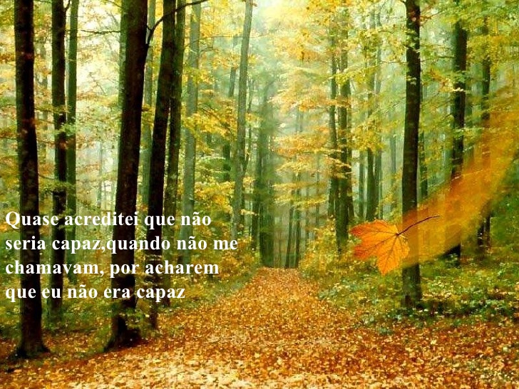 Quase acreditei que não seria capaz, quando não me chamavam, por acharem que eu não era capaz.