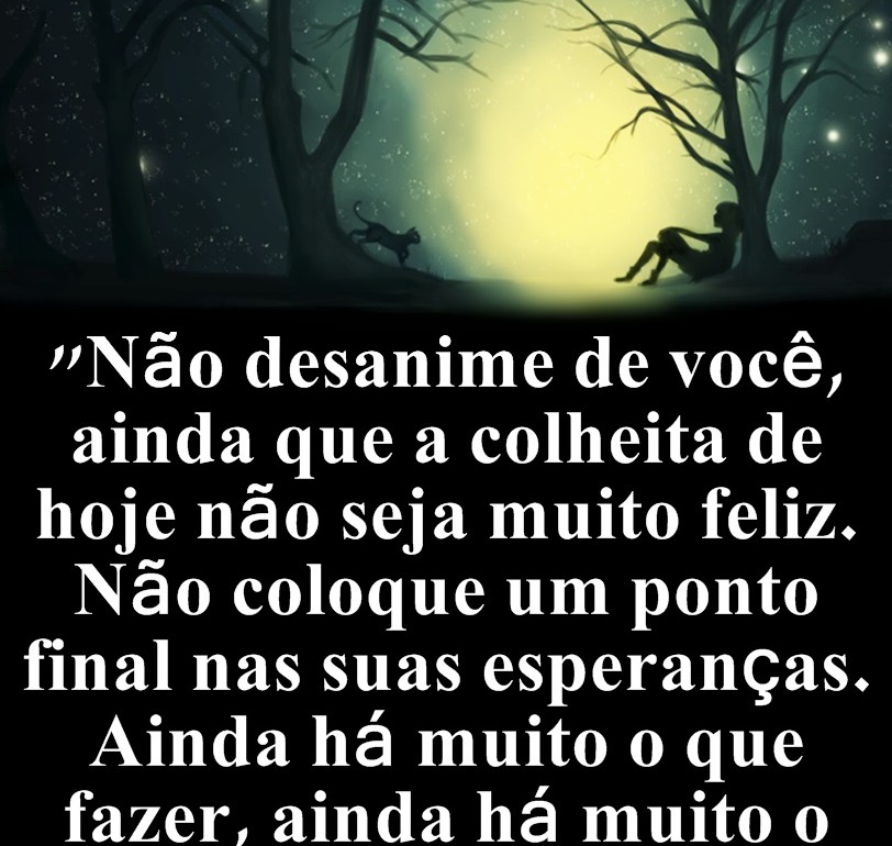Não desanime de você, ainda que a colheita de hoje não seja muito feliz.